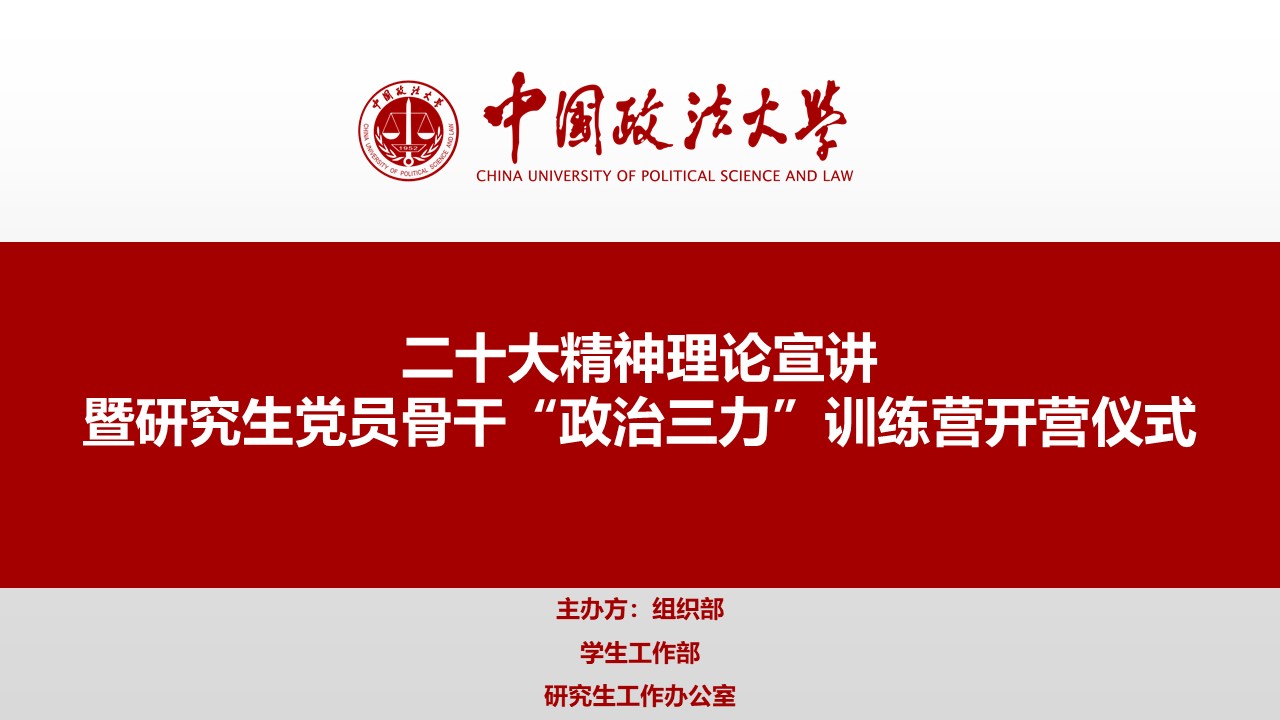 中国政法大学二十大精神理论宣讲 暨研究生党员骨干“政治三力”训练营开营仪式